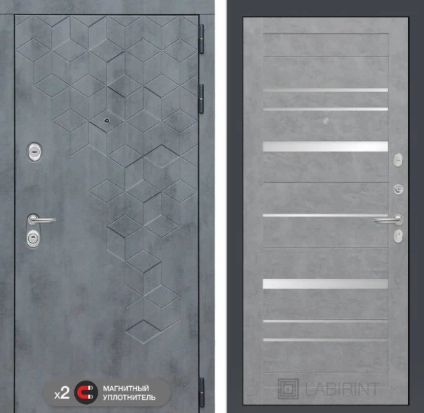 Дизайнерская входная Дверь Бетон класса Люкс с несколькими листами стали, звукоизоляцией и теплоизоляцией. Утепленный короб и полотно защитят от сквозняков и шумов. Модель не только надежная, комфортная, защищенная и высочайшего качества, но и очень красивая! Будет отлично сочетаться с интерьером дома, квартиры или офиса. Сейчас действует выгодное предложение по цене: 55 399 руб.